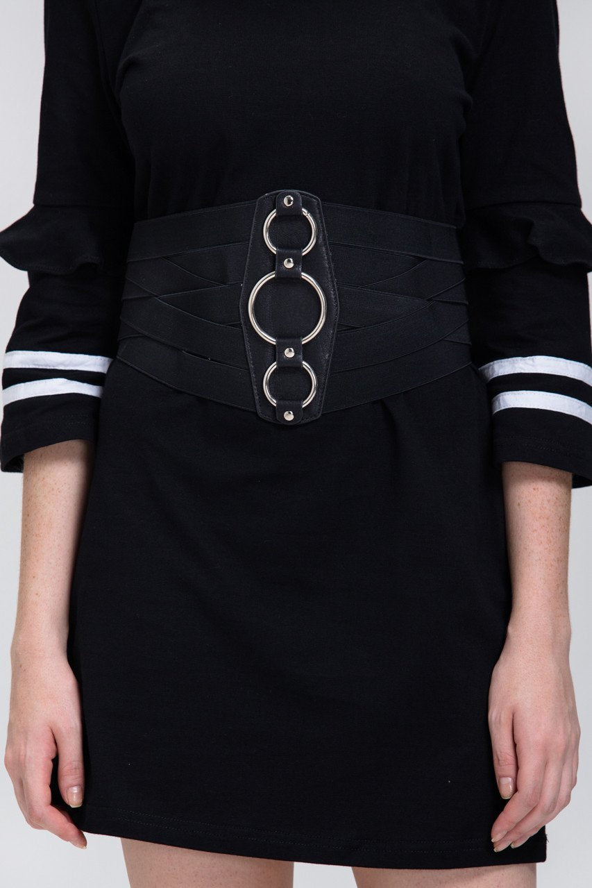 Black Elastic 3-Ring Corset Belt