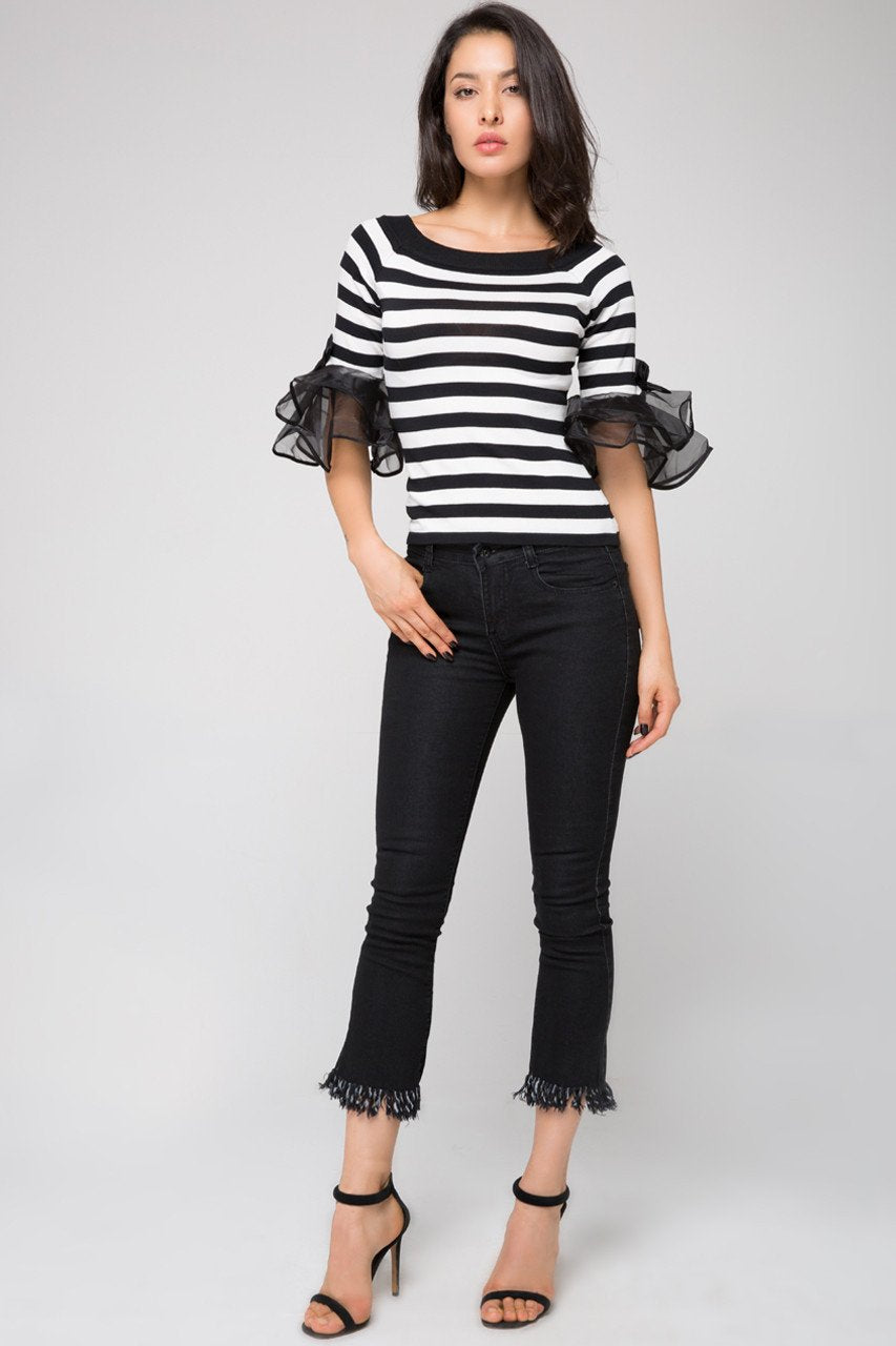 هذا الجينز الأنيق من متجرنا، بتصميم مميز من خلال القصات الأنيقة في آخر الجينز على شكل نسل رفيع.